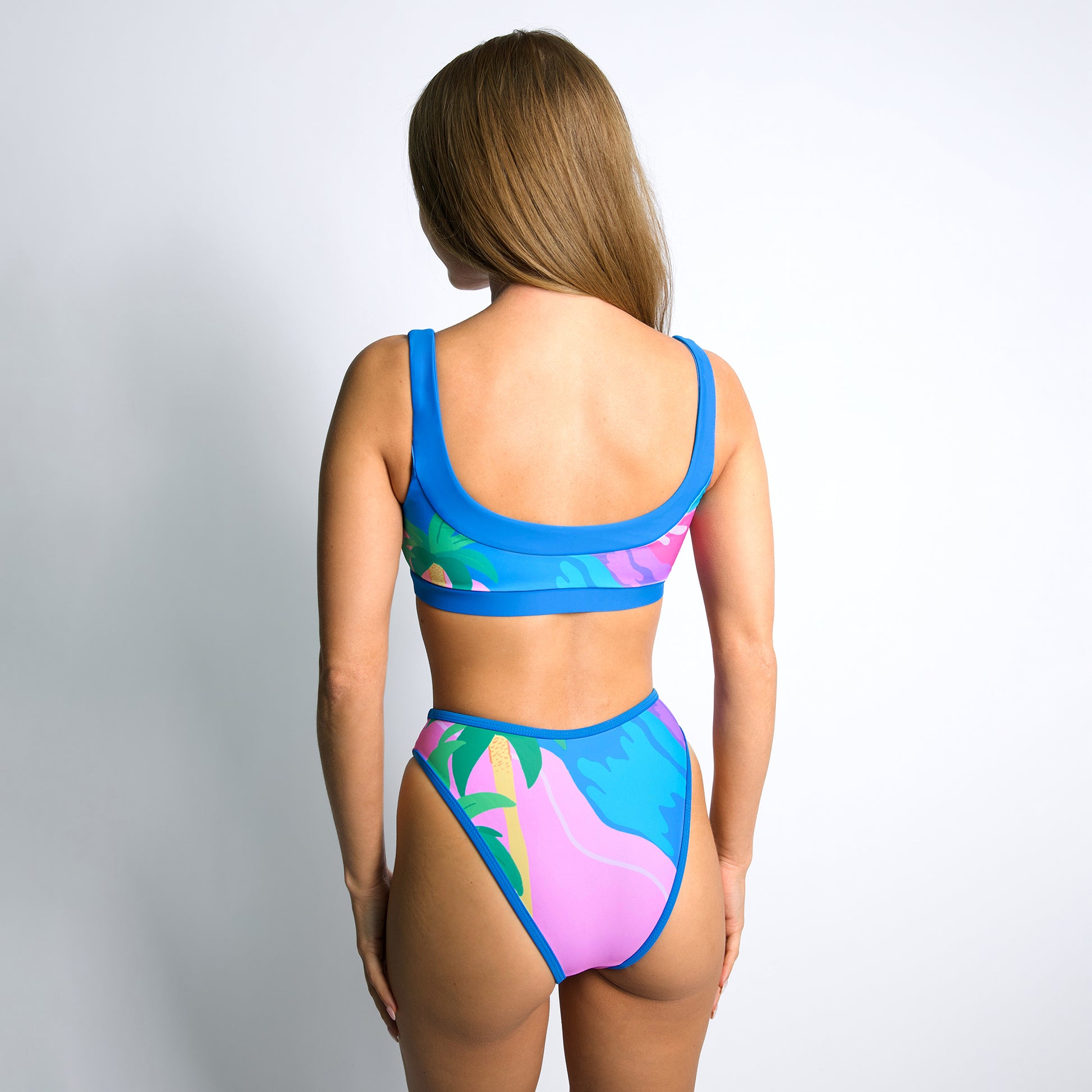Halle, our new scoop bikini features removable cup pads for an added cleavage boost. Constructed of dense, double layered fabric, our swimwear is designed to hug every curve while providing the functionality of staying in place during any sun soaking activity!