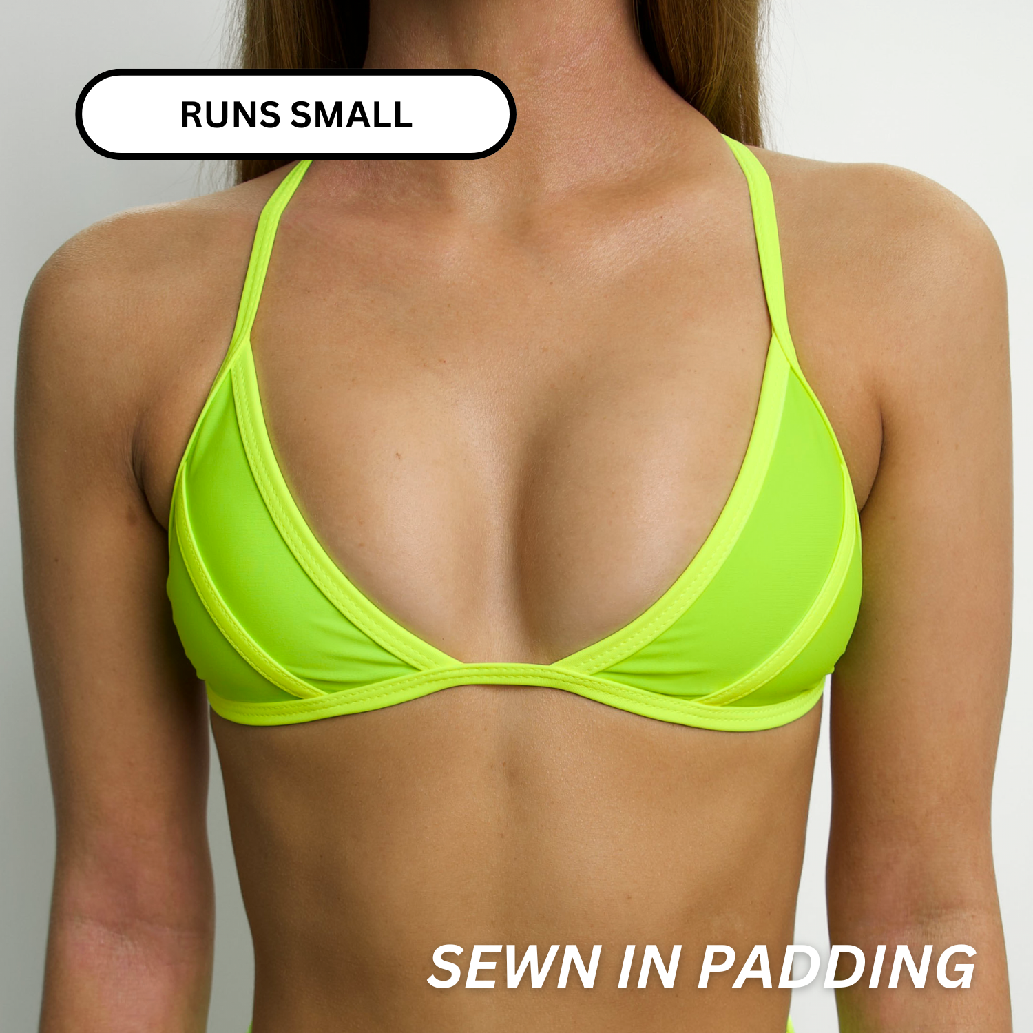 Lily, our new triangle top features sewn in cup pads and has a criss cross tie back. Constructed of dense, double layered fabric, our swimwear is designed to hug every curve while providing the functionality of staying in place during any sun soaking activity!
